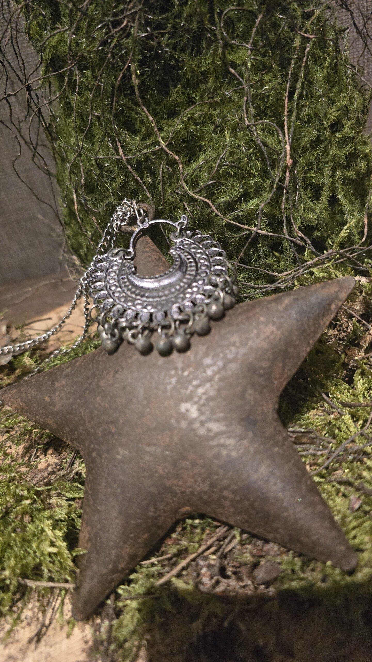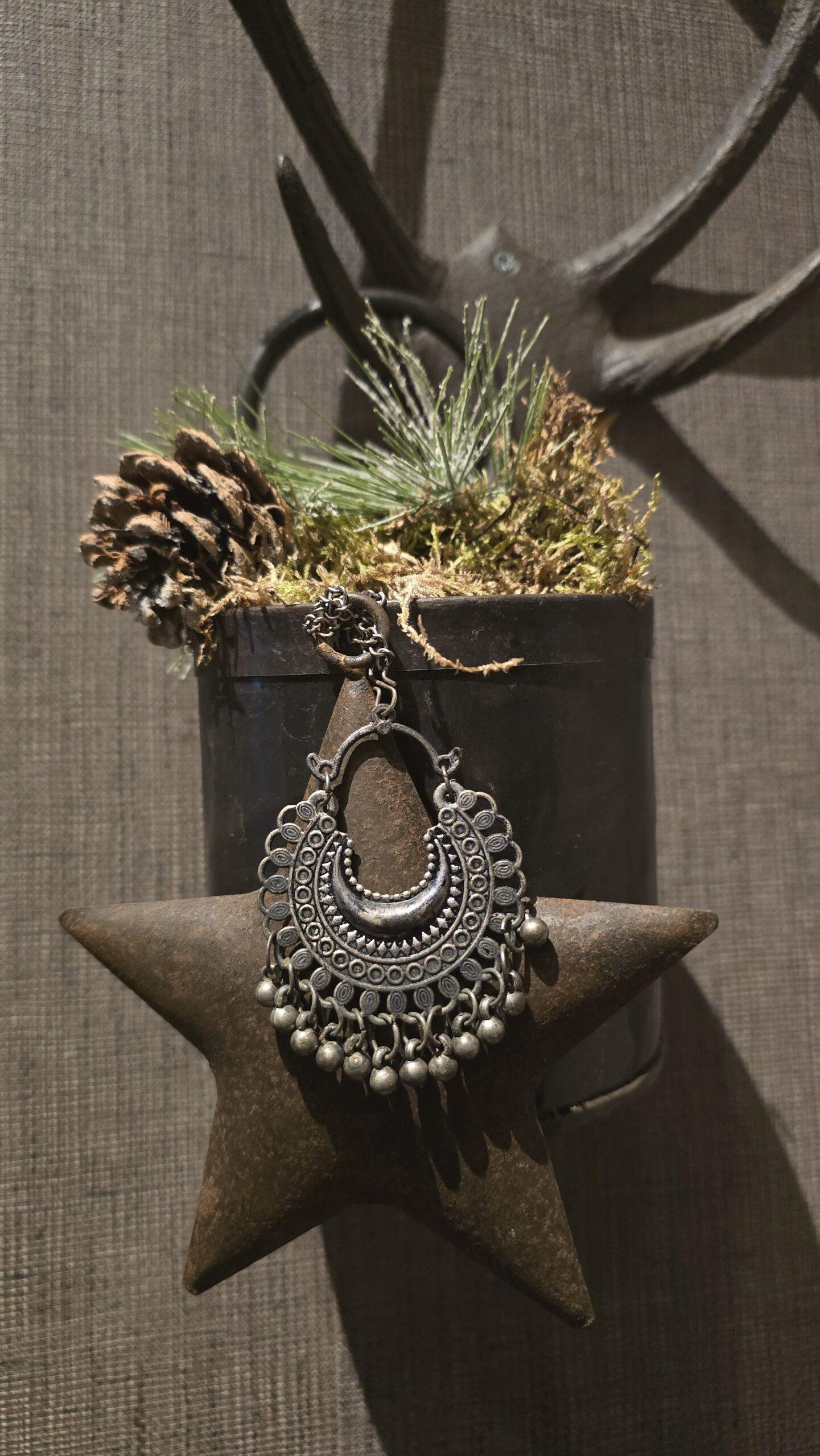 Roestige ster aan koord 27cm