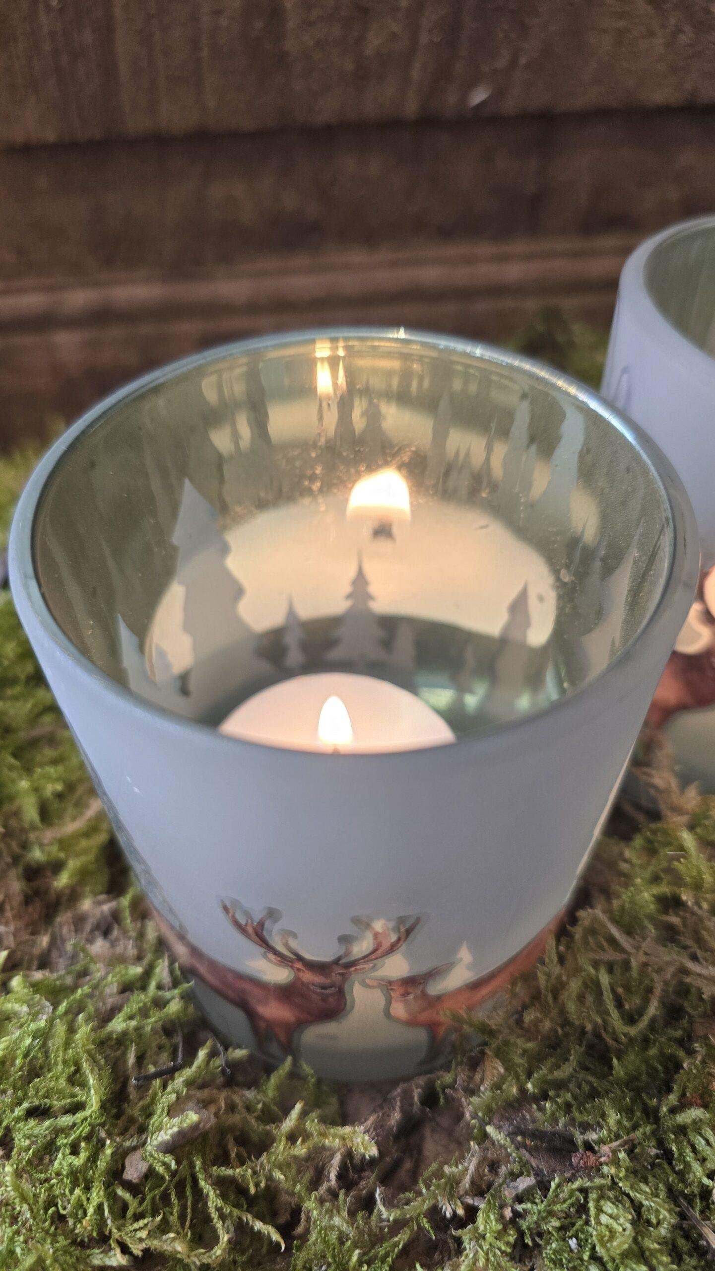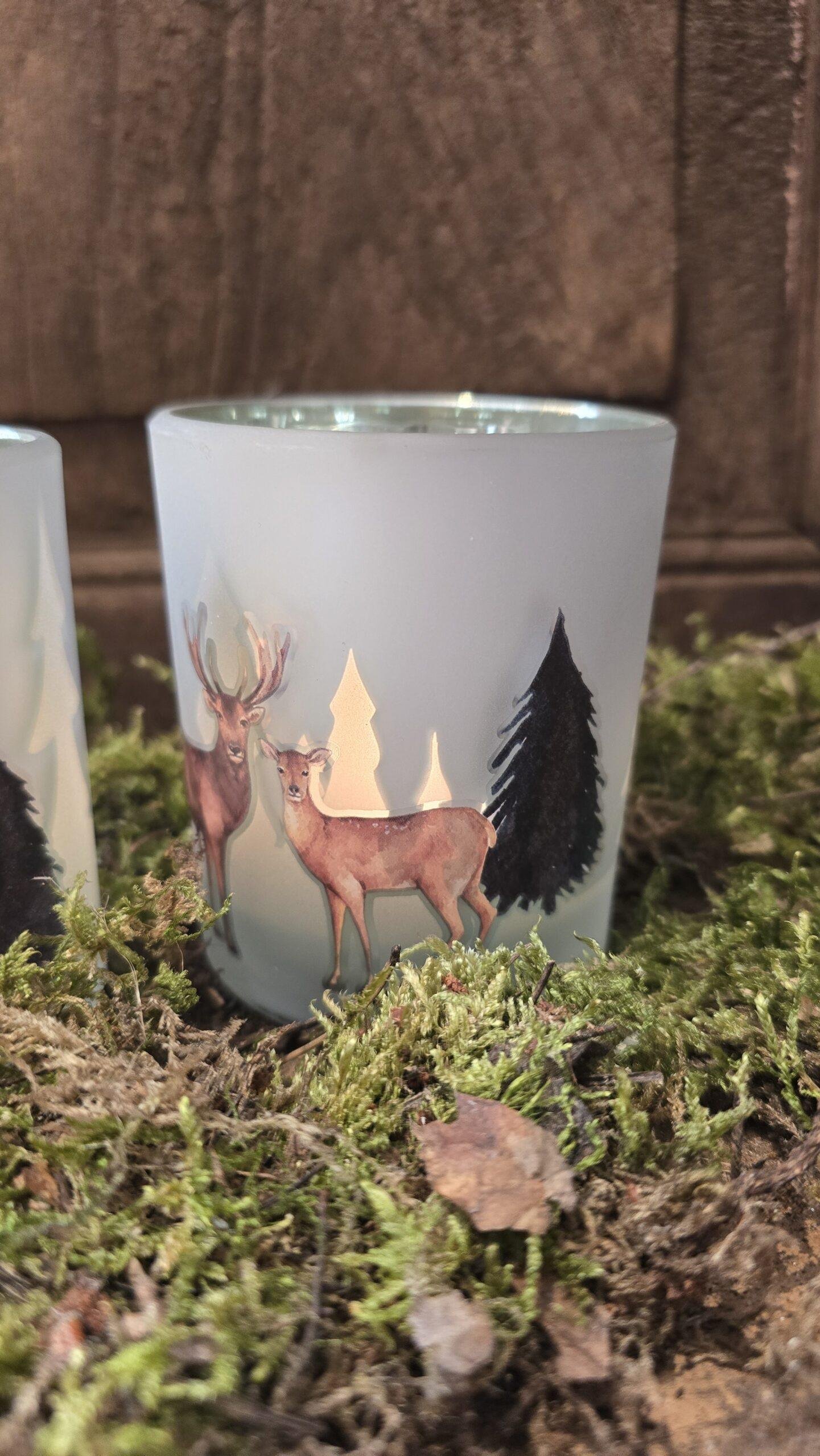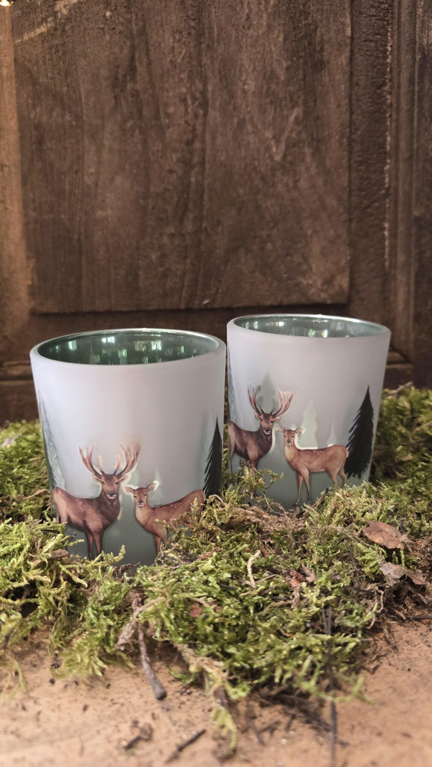 Theelichthouder met hert-7x8cm