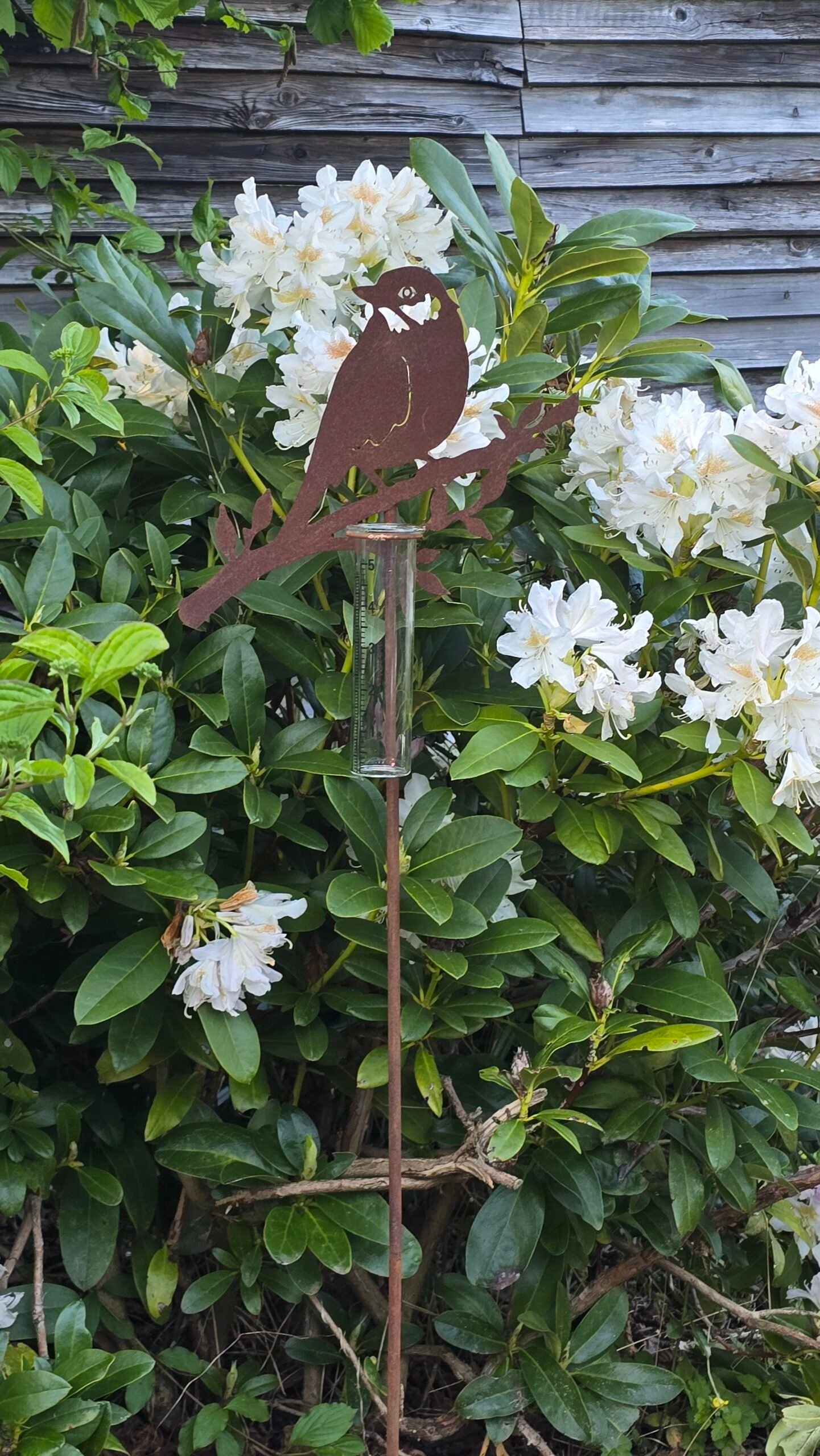 Tuinsteker met regenmeter vogel roest