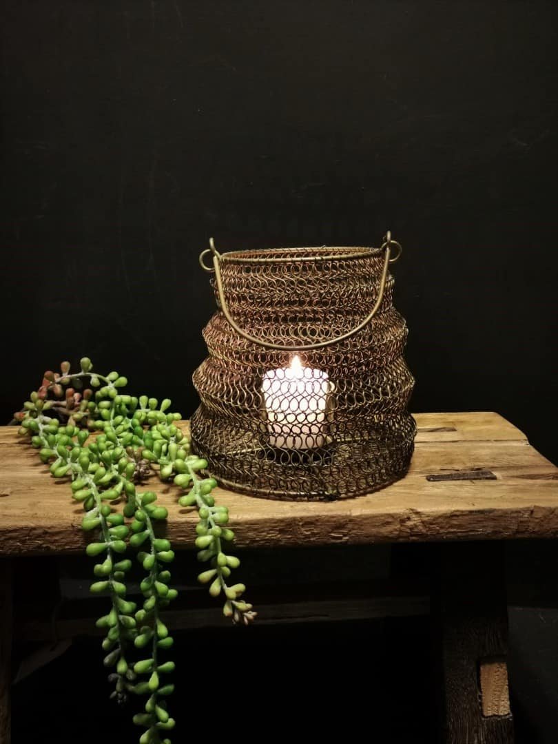 De vouw lantaarn in een warme messing kleur is een combinatie van design en functionaliteit. Zijn veelzijdigheid maakt hem perfect geschikt voor tafels, vensterbanken. Ook kunt u de lantaarn laten hangen als charmante wanddecoratie.