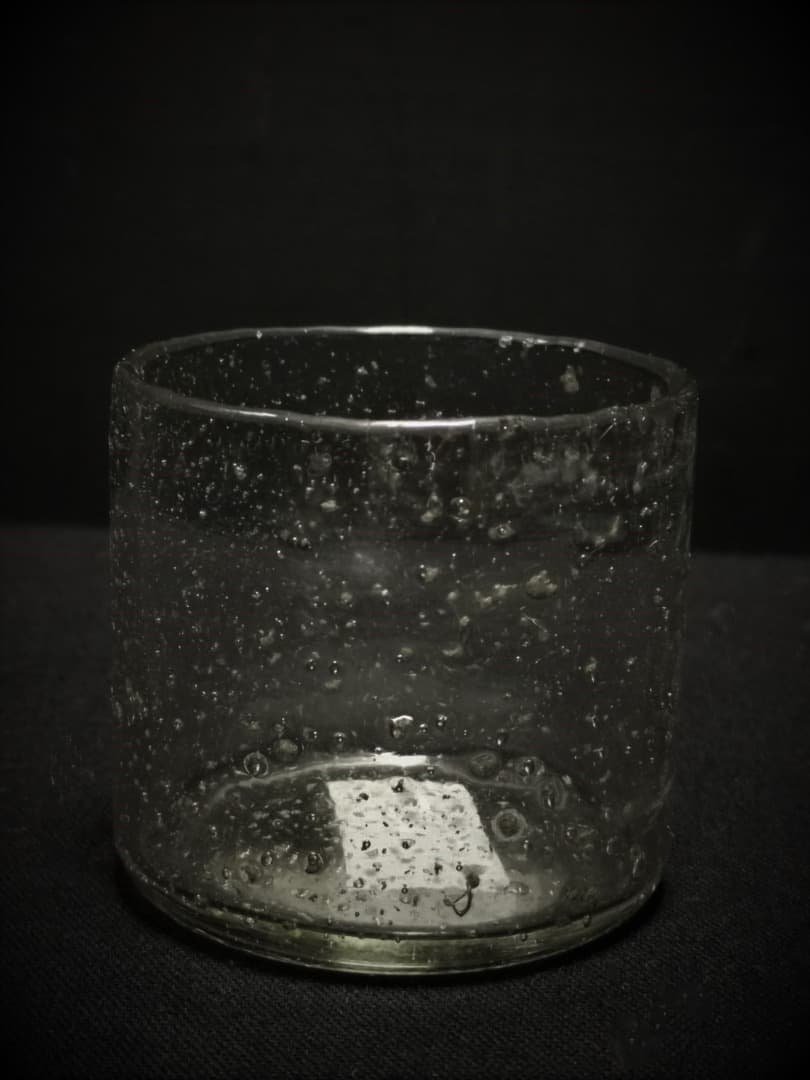 Glazen cilinder maat xxs met een afmeting van ca 7 x 7 cm.