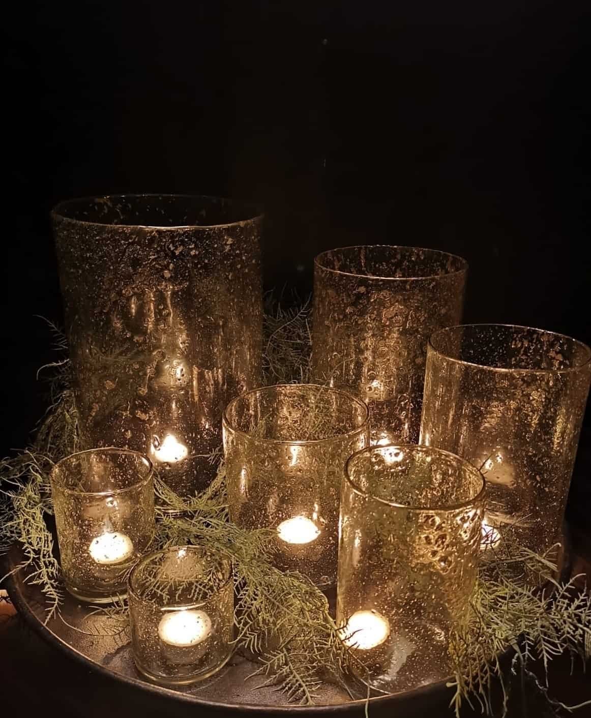 Sfeervol kaarslicht door de bewerkingen in het glas.