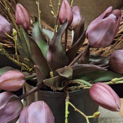 Met de Enkele tulp donker paars donker blad haal je niet alleen een decoratief element in huis, maar ook een blijvende herinnering aan de pracht van het voorjaar. Ervaar de magie van bloemen, ongeacht het seizoen, en laat je omringen door de tijdloze schoonheid van deze kunstige creaties.