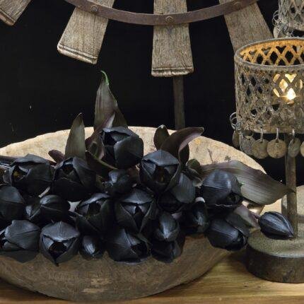 Met de Enkele tulp zwart donker blad haal je niet alleen een decoratief element in huis, maar ook een blijvende herinnering aan de pracht van het voorjaar. Ervaar de magie van bloemen, ongeacht het seizoen, en laat je omringen door de tijdloze schoonheid van deze kunstige creaties.