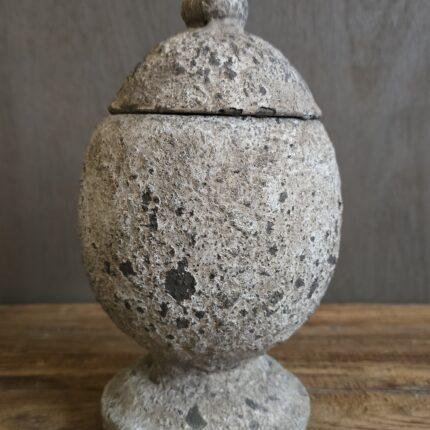 Stenen pot met deksel konijn M – landelijk sobere decoratiepot